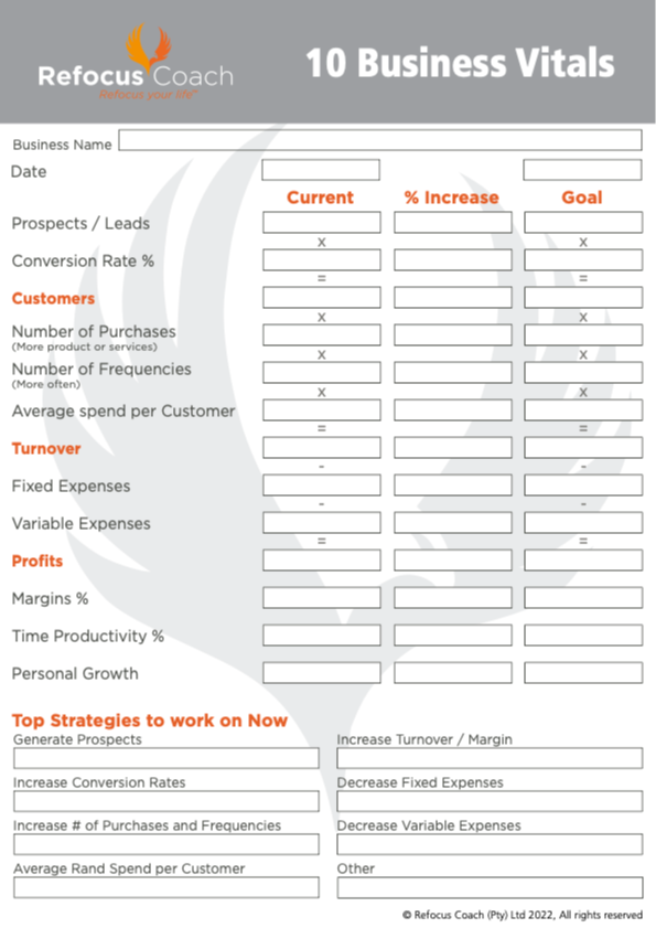 10 BUSINESS VITALS WORKSHEET